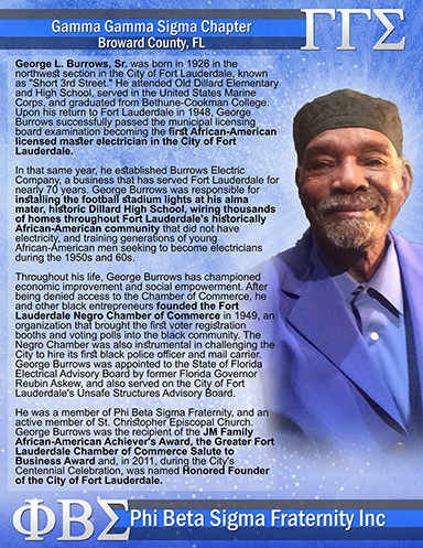 *In lieu of flowers please consider making a charitable donation to The George Burrows, Sr., Phi Beta Sigma Fraternity Scholarship.