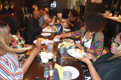 In attendance was Bobby Henry, publisher of the Westside Gazette; Attorneys Kenasha Paul and Sarah Ber-trand of The Black Professionals Summit; Suzzette Turnbull, CEO of Uncommon Marketing (and food blogger hobbyist); Althea “Tia” Brown, WSVN Channel 7 Business Coordinator; Darcelle Hall, Producer of Bites with Belkys; Hot 105 radio personality Jill Tracey; Fashion guru Chanel Diana, CEO of I Love Vintage; Sabrina Moore, CEO of Fabulous Gold Standards; social media influencer Rochelle Davis, and Westpine Middle School Principal Christopher Johnson. Amid taking pictures, posting videos, and going live on social media, the table talk was engaging. The conversation of Black (African American) Food ensued as we ate fried green tomatoes, hamhock stew, cornbread, lemon pepper wings, southern fried chicken and waffles, BBQ chicken flatbread, veggie flat-bread, cucumber salad, smothered grilled pork chops, creamy grits, meatloaf, crispy green beans, and so much more.