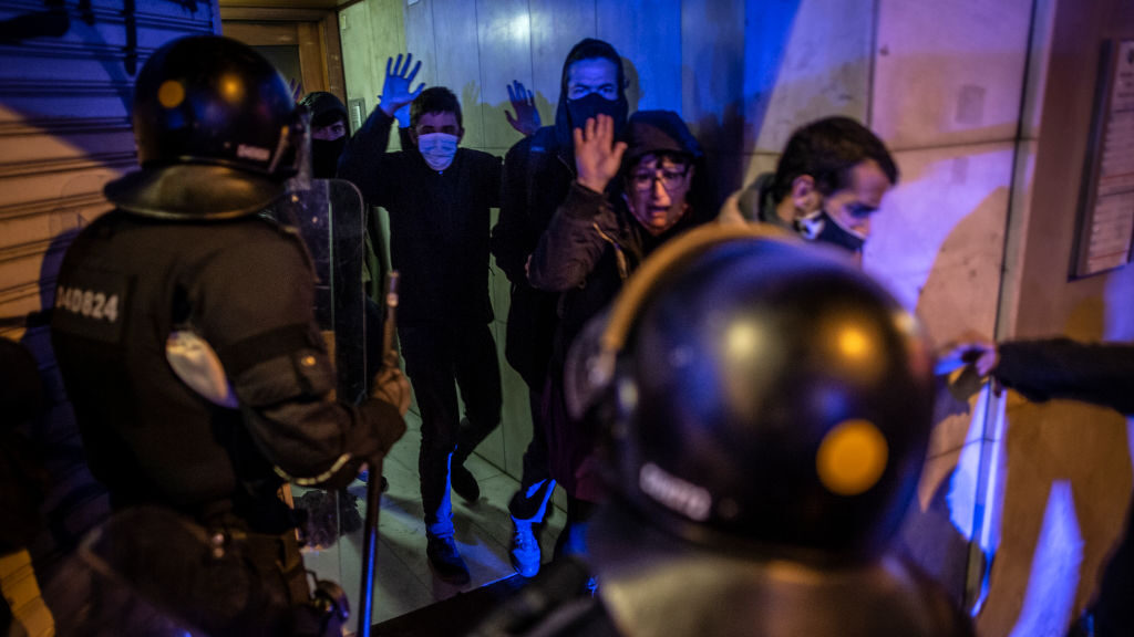 El 16 de febrero, el rapero catalán Pablo Hasel fue enviado a prisión. Había sido sentenciado en 2018 a nueve meses de cárcel por “enaltecimiento del terrorismo” e “injurias a la Corona o a las instituciones del Estado”. Hasel recibió esta sentencia tras publicar en redes sociales 64 mensajes y una canción en los que acusó a la familia real de ser una “monarquía mafiosa”. El rapero calificó a la policía española de “asesinos” y denunció la muerte en prisión de integrantes de GRAPO (Grupos de Resistencia Antifascista Primero de Octubre) y ETA, el grupo separatista vasco.
