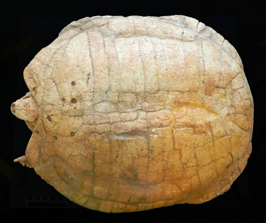 Judging by the size of the shell, the team estimated that it was laid by a turtle with a 5.3-foot-long carapace, meaning that from its neck to its tail, it would have been longer than some humans are tall.