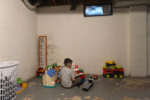 Emily and Deybis share a basement apartment in Columbus, Ohio with their two children. They’re unable to work and have resorted to selling the few possessions they have to feed the family. Credit: Maddie McGarvey for ProPublica