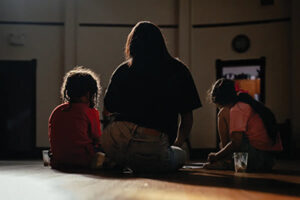 Pérez plays with her two children in Chicago. Her partner was deported earlier this summer, leaving her unable to support the family alone. Credit: Jamie Kelter Davis for ProPublica