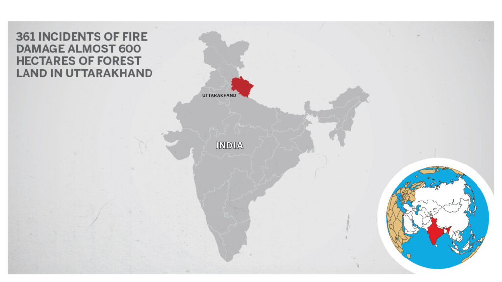 In just five days of April, Uttarakhand, home to the mighty Himalayas, has witnessed 361 incidents of forest fires that have damaged almost 567 hectares of forest land, equivalent to over 1,000 football fields.