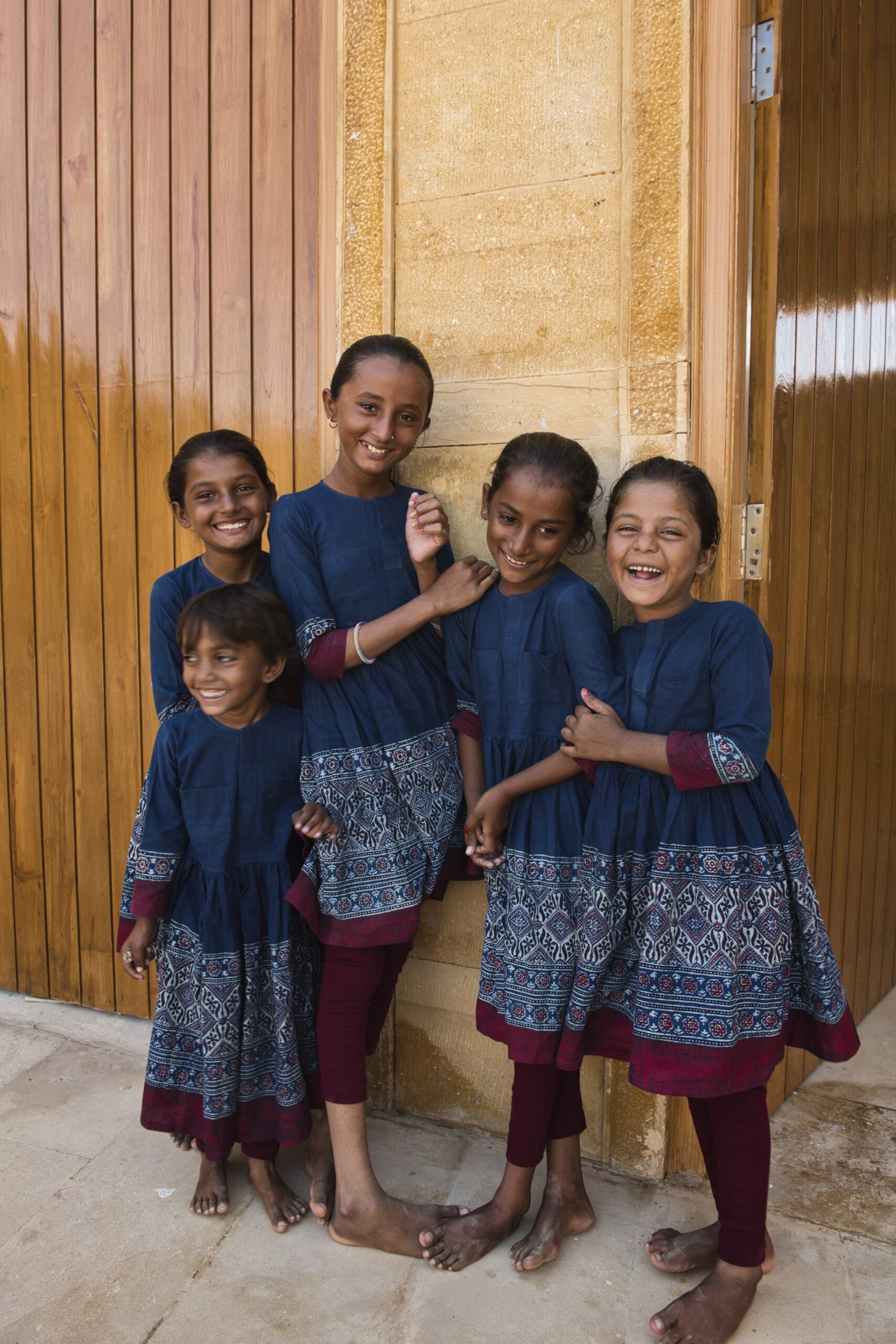 “We wanted to make the outfits beautiful; something that the girls could feel empowered in, and something that reflected the region in which they live,” said Mukherjee. “My hope is that, by incorporating Ajrakh into the design, the girls wearing the uniforms would be able to celebrate this craft and feel a sense of community and connection to their home.”