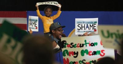 Around 300 supporters showed up hoping to hear Klobuchar speak. But the planned event never got off the ground. About 50 protesters from various groups, including the Network for Racial Justice and Black Lives Matter interrupted the gathering, chanting, “Free Myon!” Their goal was to bring attention to the questionable prosecution of Myron Burrell, as well as Klobuchar’s record as Hennepin County prosecutor.