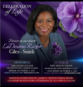 FORT LAUDERDALE, FL. — Fort Lauderdale is mourning the loss of LaDesorae “Desorae” Rozier Giles-Smith, a devoted wife, mother, and public servant whose career of more than three decades left an indelible mark on South Florida. She passed away on September 24, 2025, at the age of 60.