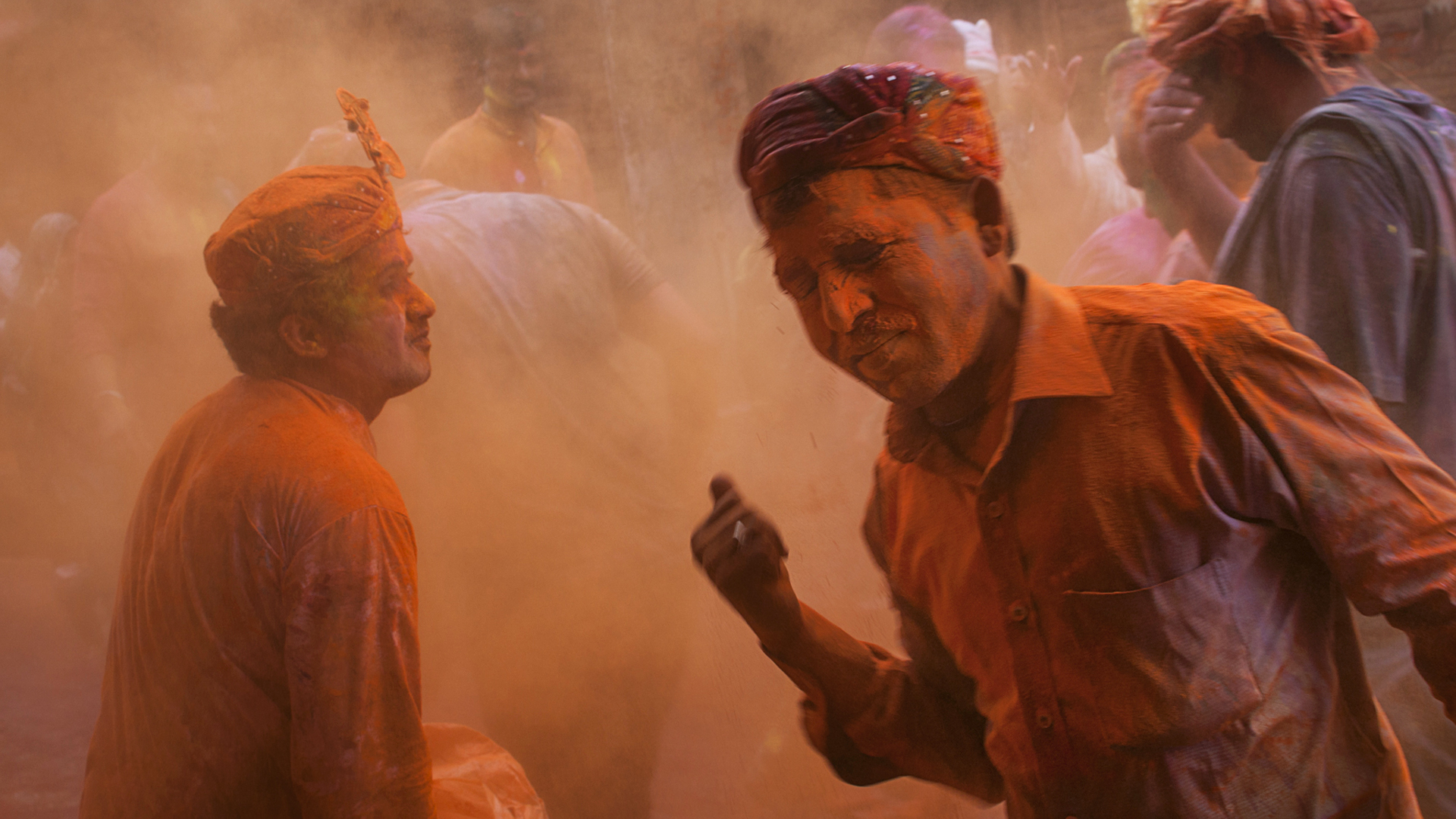 Basant Utsav kickstarts with a blast of color at Nand Bhawan, the residence of Lord Krishna’s foster father Nand Maharaj, in Nandgaon. (Abhishek Basu)
