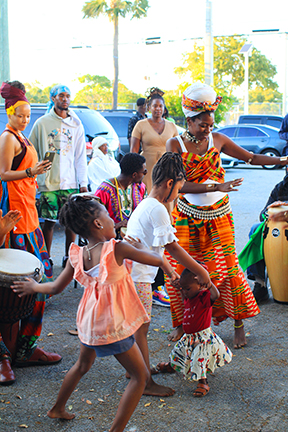 She recalls lying in bed when she heard the sound of Indigenous drum rhythms echoing through her apartment complex. “Drumming in Dania?” She thought to herself as she allowed the resonating vibrations to activate every cell of her body. Before she knew it, she was compelled to get out of bed and follow the sound of the drums which led her to a celebration unlike any she had experienced in a very long time. When she arrived she immediately felt a connection that brought her back to her childhood and West Indian roots.