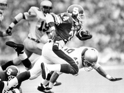 Former Michigan State football running back Lorenzo White was named to the College Football Hall of Fame recently, joining a host of Sp artans greats. (The induction ceremony was held in New York on Dec. 10.) White stood 5 feet 11 in East Lansing, but had a big impact on the Spartans, taking them to the 1988 Rose Bowl in his senior season. As coach George Perles told the South Florida Sun-Sentinel in 1985, “We call him ‘Big Foot.’ He can gear down, let people go by him, then motor again,” referencing his size 12EE shoes.