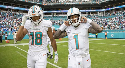 Tagovailoa finished 21-of-32 for 205 yards, one touchdown and three interceptions. Achane totaled 150 scrimmage yards (128 rushing, 22 receiving) with two touchdowns, and Waddle led Miami receivers with six catches for 95 yards. Waller added two receptions for 12 yards and the go-ahead score inside the final minute.