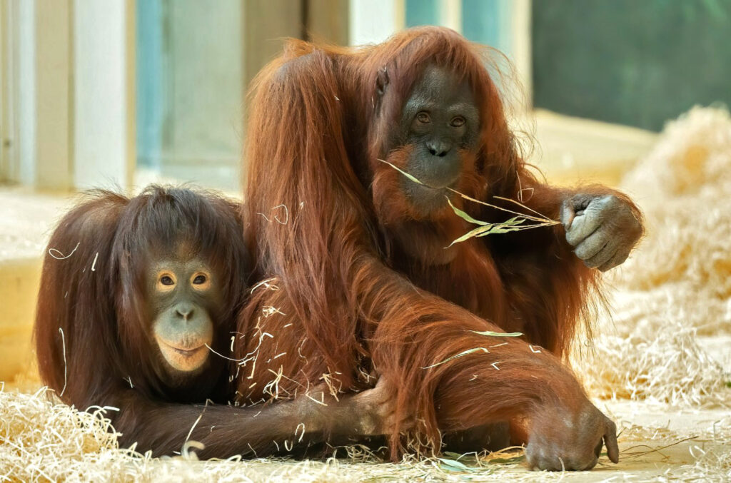 The female orangutans, seven-year old Surya from Rostock Zoo and 56-year-old Mota. Orangutans are said to be the closest relatives to man, sharing 96.4% of our genes. Sometimes they work smoothly together, and sometimes they don’t. (Daniel Zupanc/Real Press)