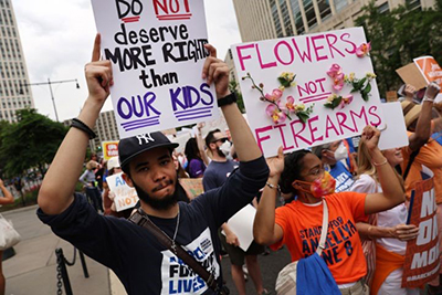 Therefore, protesters say it’s up to the U.S. government to take charge and institute sensible gun legislation that doesn’t rile up Second Amendment proponents who believe their guns will be taken away. At the same time, folks on the opposite end of the spectrum whose lives have been upended by gun violence are demanding stricter gun policies. In the past, those opposite forces have collided and produced no meaningful change for either of them.