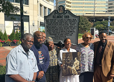 On Saturday, a historical marker was unveiled at the intersection of Western Avenue and Wisconsin Avenue — next to land where the Black suburb Belmont would have been. Commissioned by the Maryland State Department of Transportation, the marker is due to the efforts of public historians Kim Bender and Neil Flanagan.