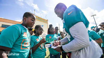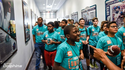 MIAMI – The Miami Dolphins announced the creation of the Football Unites Captains Program, a diversity and inclusion initiative that will bring 80 to 100 middle school students from various backgrounds together once a month for a day of learning about tolerance, acceptance and leadership. Dolphins players and alumni will join these students to share their stories, perspectives, and experiences. The Ross Initiative in Sports for Equality (RISE) will assist with programming and program evaluation.