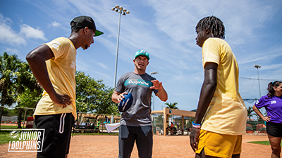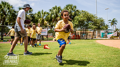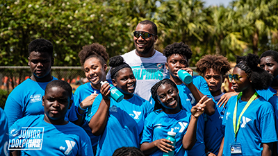 Junior Dolphins coaches and YMCA camp counselors were joined by Chubb and Berrios as they engaged with students and led them through football fundamentals and playing techniques. Football centric activities were set up on each of the four baseball fields where campers participated in games and trained like professionals. For many campers, ages five to 17, this was the first time they were introduced to and connected with a professional athlete.