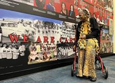 Thelma Gibson Miami Civil Rights pioneer Thelma Gibson spots a photo of herself in the history wall immortalizing alumni from George Washington Carver Elementary. (Natalie La Roche Pietri)