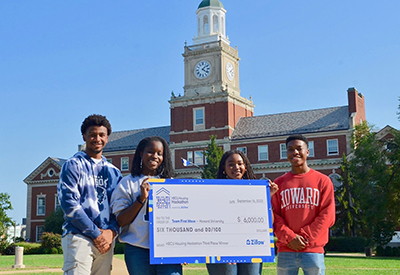 Team First Move from Howard University won third place at Zillow’s HBCU Housing Hackathon: (L-R) Bryce Gordon-Pinkston, Ife Martin, Ayotunde Ogunroku and Joshua Veasy.