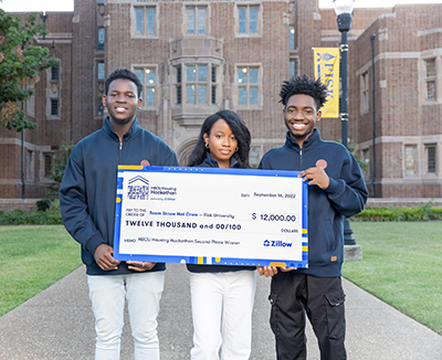Team Straw Hat Crew from Fisk University won second place at Zillow’s HBCU Housing Hackathon: (L-R) Collins Ikpeyi, Sopuruchi Ndubuisi and Elijah Okoroh.