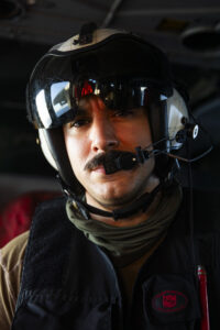 Naval Air Crewman (Helicopter) 1st Class Ricardo Rosado, from Weston, Florida, assigned to the Golden Falcons of Helicopter Sea Combat Squadron (HSC) 12, poses for a photo in an MH-60S Seahawk while the Nimitz-class aircraft carrier USS George Washington (CVN 73) conducts a replenishment-at-sea with Lewis and Clark-class dry cargo and ammunition ship USNS Cesar Chavez (T-AKE 14) in the Pacific Ocean, Oct. 25, 2024. George Washington is 7th Fleet’s premiere forward-deployed aircraft carrier, a long-standing symbol of the United States’ commitment to maintaining a free and open Indo-Pacific region, while operating alongside Allies and partners across the U.S. Navy’s largest forward-deployed numbered fleet.