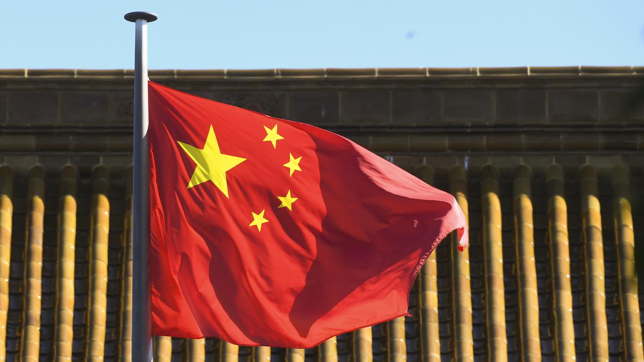 The Chinese flag is seen at the Chinese Embassy. (Lukas Coch/AAP Image)