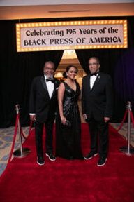 NNPA President and CEO Dr. Benjamin F. Chavis, Jr. arrives at NNPA 2022 Legacy Awards with his daughter, Ana and Make it Plain Host Mark Thompson (photo credit: Mark Mahoney)