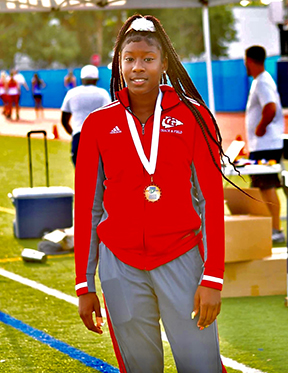 Nyajah, supremely confident, believes that she is built physically, emotionally and mentally for challenges associated with the demands of track and field and at 5’5”, 141 pounds, who’s going to challenge her. Her combination of speed, strength, power and mental acumen bodes well for a successful collegiate career.