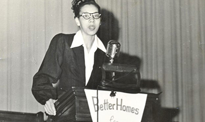 Then FAMU student Althea Gibson speaks at a campus event. (Credit: Meeks-Eaton Archives)