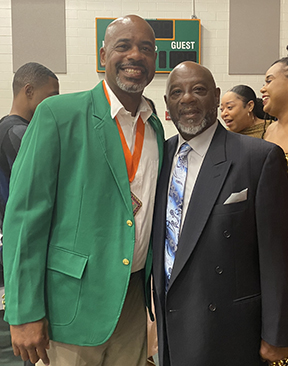 Patrick Bonner, former Boyd Anderson High All-State quarterback and FHSAA 5A basketball state champion, was inducted into the Florida A&M University 2023 Sports Hall of Fame during enshrinement ceremonies held Friday, September 22, 2023, at the Hansel E. Tookes, Sr. Recreation Center. One of six honorees ( Dr. Janelle R. Baker – Supporter, Willie Brown – Football, Brenda R. Fogle – Women’s Basketball, Terrence Hinson – Track & Field, Teresa Jenkins – Women’s Basketball, Nakia Linson – Track & Field and Kenya Pereira – Softball), Patrick, in one of the most amazing single season, record setting performances, broke every conceivable passing record in the annals of FAMU, the MEAC Conference and the NCAA. Under the tutelage of Head Coach Billy Joe, Patrick was named Black College and MEAC Player of the Year after passing for over 4200 yards and 42 touchdowns, leading the Rattlers to an 11-2 record. This year’s Enshrinement Weekend was dedicated to the memory of the late Kenneth “Ken” Riley, a legendary student/athlete, coach and administrator who was elected to the prestigious Pro Football Hall of Fame this past January. Notable Broward County FAMU Hall members include Mr. Frank Scruggs and Quinn Grey.
