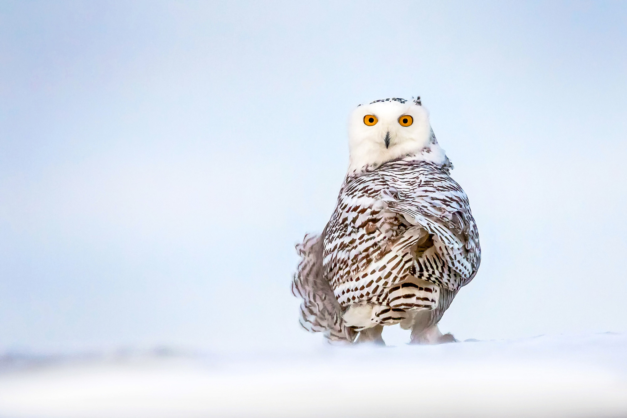“Their turf battle lasted a few hours and I was exhausted traveling in the snow,” he said. “I sat in the snow to catch my breath when one of the owls landed a few meters away from me and instantly looked at me with wide eyes. I captured it in that moment, and it turned out to be a pretty nice photo.”