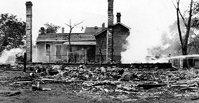 The Springfield 1908 Race Riot was a violent response by a white mob to the allegations against two Black men, Joe James and George Richardson, held in the Sangamon County Jail. The mob’s demands for their release escalated into widespread violence after the men were moved to another location for their safety. Throughout the weekend of August 14–16, 1908, two Black men, Scott Burton and William Donnegan, were lynched, and dozens of Black-owned and Jewish-owned businesses were looted and destroyed.