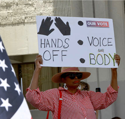 The enthusiastic crowd, with creative signs in tow, waived at passing cars receiving honks of approval demonstrating support while others among them listened to passionate speeches by democrat office holders and candidates seeking office. One by one, each speaker voiced their individual and collective displeasures with the court’s direction making vows and pleas to organize the vote.
