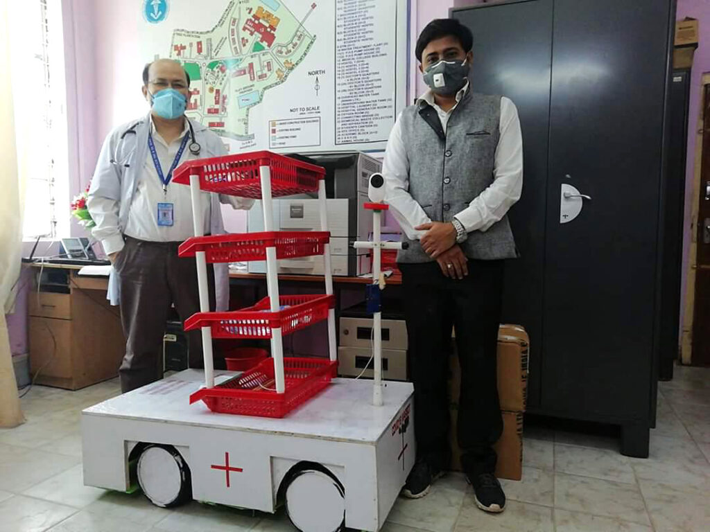 While Club First’s service robots can operate within 232 square meters, Guwahati-based Yantrabot Technologies Pvt Limited’s robots cover a wider range. “Much like cellular networks, a tower is placed between the robot and the person using the mobile app. If the distance exceeds 10,000 square meters, another tower will be installed. A tower just costs INR 4,500 ($61.5),” said Arunjyoti Borgohain, co-founder of Yantrabot Technologies. As of now, the company’s real-time robots are in use at a quarantine facility at the Assam Medical College and Hospital, Dibrugarh. They use a wireless navigation system for mobility.