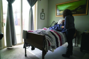 Robert Maryland discusses his father’s care with a visiting nurse, Louis Bryant III, Observer