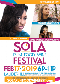 The Lauderhill Regional Chamber of Commerce presents its Fourth Annual SoLa Rum, Food & Wine Festival will take place on Sunday, Feb. 17, 2019 from 6 to 11 p.m. on the grounds of the Lauderhill Performing Arts Center, 3800 N.W. 11 Place, Lauderhill, Fla. 33311. I am super excited to attend as I am a huge fan of rum and soul music. It was announced earlier this week that this yearâs entertainment includes Grammy Nominated Artist Jazmine Sullivan. Jazmine Sullivan is a seven-time Grammy nominated artists whose known for some of her greatest hits like Need You Bad, Bust Your Windows and Forever Donât Last. With her heart-tugging lyrics and soulful ballads, Sullivan is more than a R&B/Soul singer, she is a connector and I am thrilled to have her in my hometown, the City of Lauderhill.