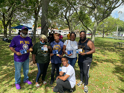 Members of Black Greek Letter Organizations and allies combed the streets of Richmond Heights, FL to promote voter engagement. Over three dozen event adult and youth volunteers distributed voting preparedness checklist reminders and encouraged voter registration to residents across the community. Volunteers included members from the Iota Pi Lambda and Eta Delta Chapters of Alpha Phi Alpha Fraternity, Inc. Pi Delta Omega Chapter of Alpha Kappa Alpha Sorority, Inc. Miami Alumnae Chapter of Delta Sigma Theta Sorority, Inc. Pi Nu Chapter of Omega Psi Phi Fraternity, Inc. Rho Sigma Chapter of Phi Beta Sigma Fraternity, Inc. South Miami Chapter of Jack and Jill of America, Inc., and South Dade Branch of the NAACP. The outreach activity was sponsored in part by Black Voters Matter, Equal Ground, and Florida Rising.