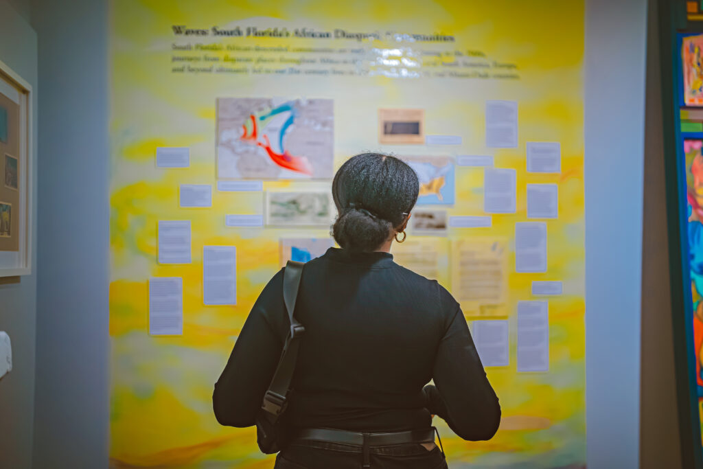 The exhibit will be on display through September 21, 2025, in the main galleries of the museum, 170 NW 5th Avenue, Delray Beach, FL. At the opening reception, Bolah explained the fluid thread that tied the exhibit’s various mediums together – from mixed multi-media scenes and sun-bleached shells to recorded, oral histories and Bahamian postcards from the museum archives.