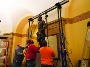 Statue of Robert E. Lee being removed from the U.S. Capitol in December 2020. Photo: Jack Mayer/Office of Governor Northam