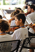 Classes begin with performances from professional musicians like Black Violin or Sons of Maestro, artists who break musical stereotypes of what “classical” is supposed to sound and look like. Students seek to find themselves within their artistry. Kids that have different roots, upbringing, and rhythms give them the chance to use that within their music.