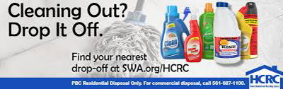 Remember, pollution prevention starts at home. A full list of household hazardous wastes can be found at SWA.org/HCRC or call 561-697-2700 or 866-SWA-INFO (toll-free) to learn more about the Solid Waste Authority of Palm Beach County’s Home Chemical and Recycling Centers.