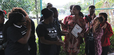 This year’s “Bronze Bra” Award recipients include Sponsor of the Year, Rick Beasley, Executive Director of Career Source South Florida; Volunteer of the Year Stephanie Sylvestre, The Children’s Trust CIO; Community Partner of the Year Timothy Barber, Executive Director of The Black Archives; Training Partner of the Year Jill Tracey of HOT 105; School Partner of the Year Principal Carla Patrick of Edison Park K-8 Center; and Business Partner of the Year Florida Film House. Secretly, a special award will be given to two dynamic participants of the Urgent, Inc. family, Naomi Wiggins, Grandparent of the Year and Marcus Williams, Youth Member of the Year. ”This is indeed a great honor. I will proudly display my Bronze Bra,” says Stephanie Sylvestre, who gave her personal time to teach and share her passion for crochet with the elementary age students in Urgent’s after school program in Overtown. Their works were featured in last year’s #OurVoiceMatters Art Exhibit during Soul Basel in Overtown. “It was so nice to see them get excited about learning crochet techniques. Even my boys loved it. It turned into a race to see who could create the longest strip in the fastest time.” Marco Mall, Executive Producer of Florida Film
