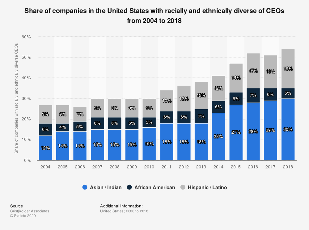 Multiple data sources agree. CEO representation among people of color has improved somewhat, according to the 2019 volatility report from executive recruiter Crist|Kolder, based on surveys.