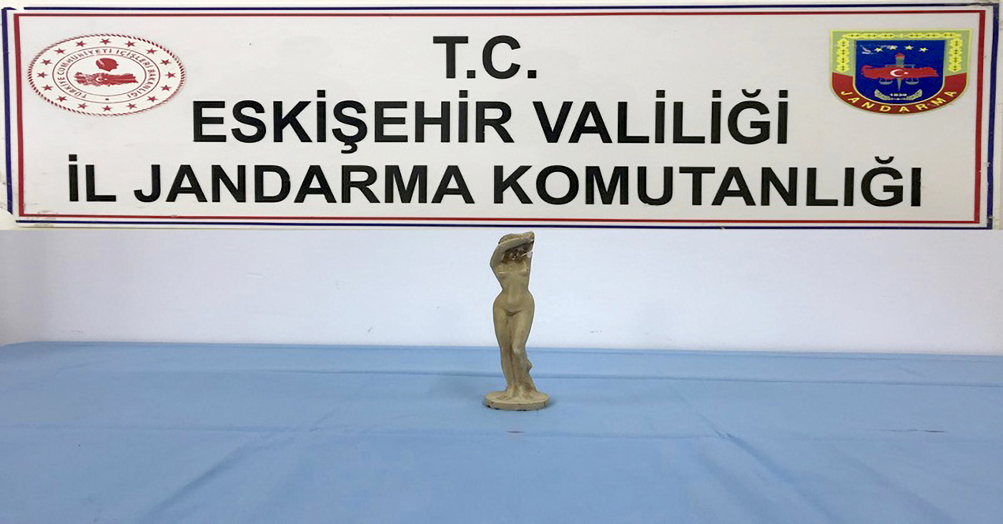 A female statue from the Roman period was seized and two people were detained. (Eskisehir il Jandarma Komutanligi/Newsflash).