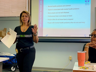 “At first I fought therapy, but it was the best thing I ever did.” Lynette went on to say that the Police Department also sent her to crisis intervention training, and she began to learn about mental health conditions like bipolar disorder and families dealing with manic behaviors that caused police to pull guns.