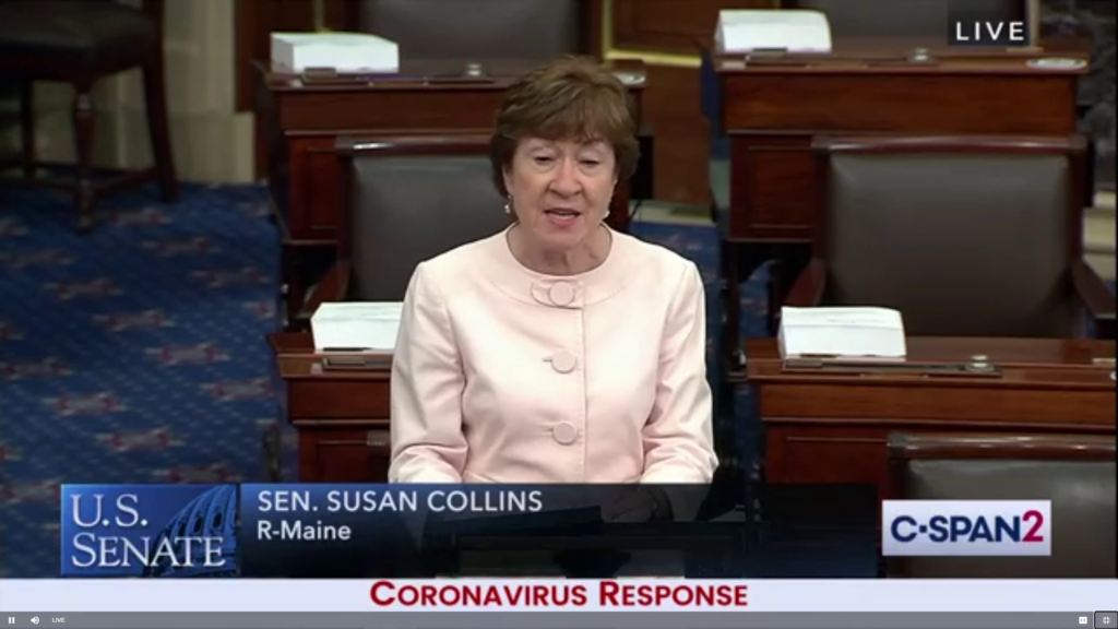 During debate on the floor of the U.S. Senate, Sen. Susan Collins, R-Maine, called for decreasing the maximum number of people that businesses eligible for federal pandemic assistance can employ from 500 to 300, with a special provision for seasonal employers.