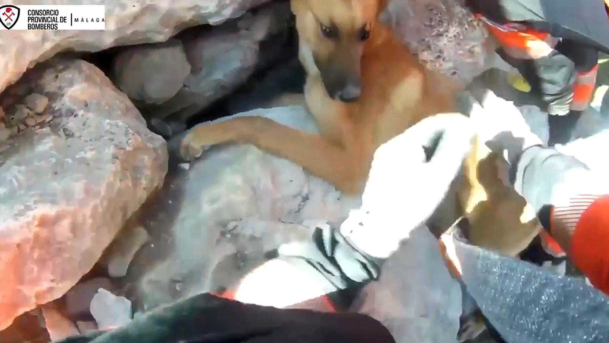 PIZARRA, Spain — The members of the Malaga Fire Department rescued a dog that was trapped between large boulders for 24 hours while searching for food on a Spanish beach.