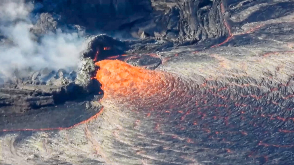 Lava erupting from a vent on the northwest side of the crater in Hawaii Volcanoes National Park. (USGSVolcanoes/Newsflash)