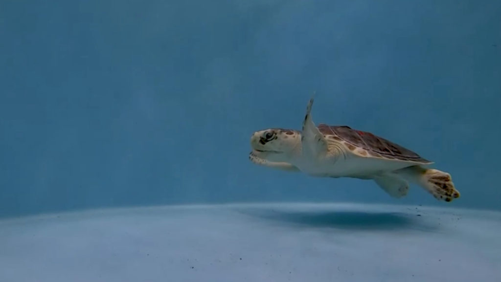 It is one of several rescued turtles that live in the marine park, where they have spent almost three months under the care of a special team from the aquarium’s Animal Rescue Clinic.