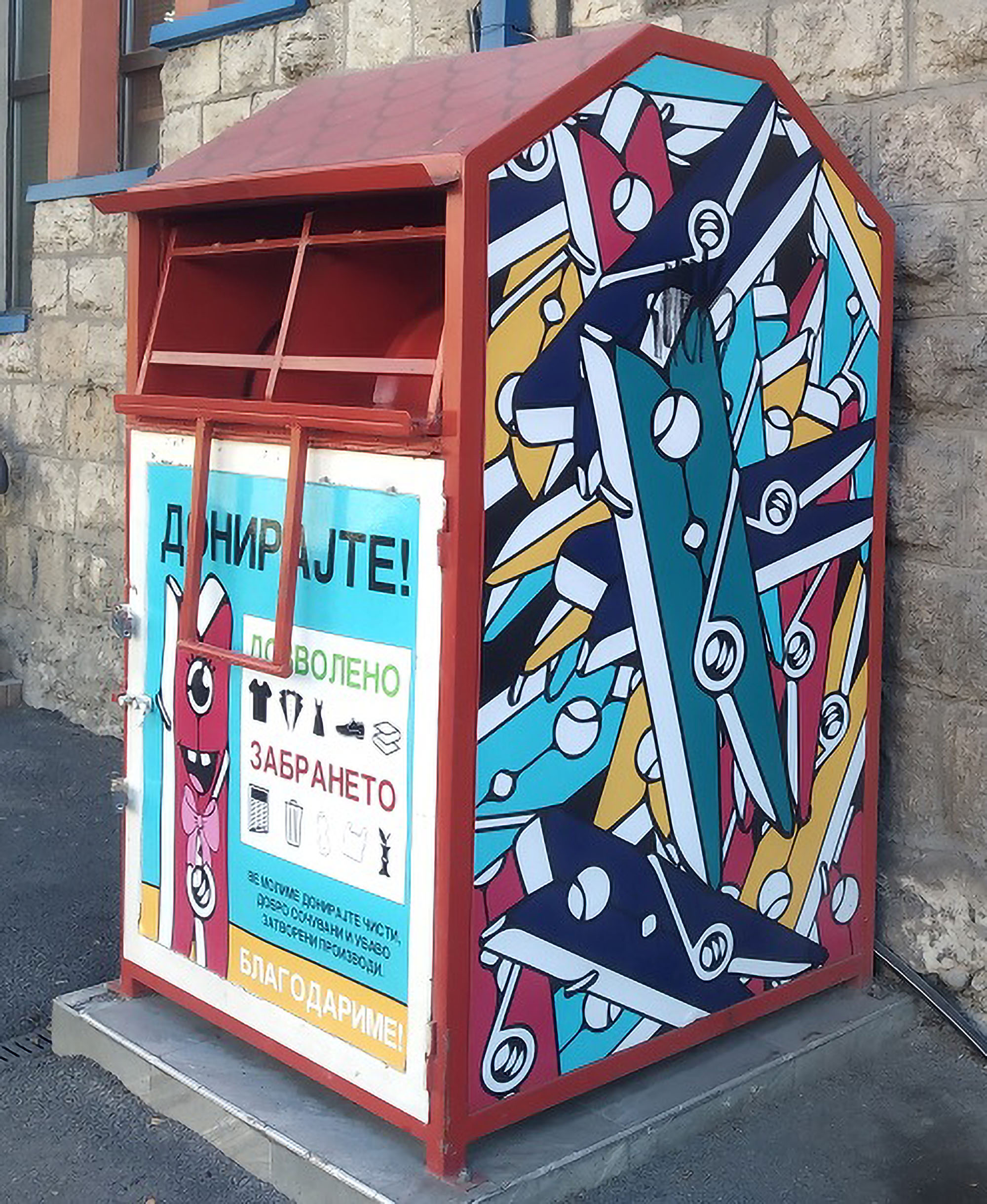 The Red Cross started using the charity collection boxes in 2013. There are eight donation containers fat several locations throughout the city of Skopje.