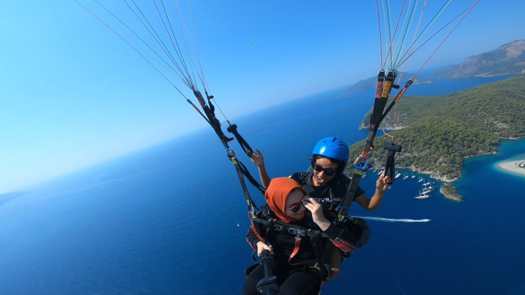 “It was unlikely the falling object would meet us at the same point,” said paragliding instructor Aysenur Katirci, who was on a tandem flight with Tuba Turkseve over the resort village of Oludeniz in the southwestern province of Mugla, Turkey.