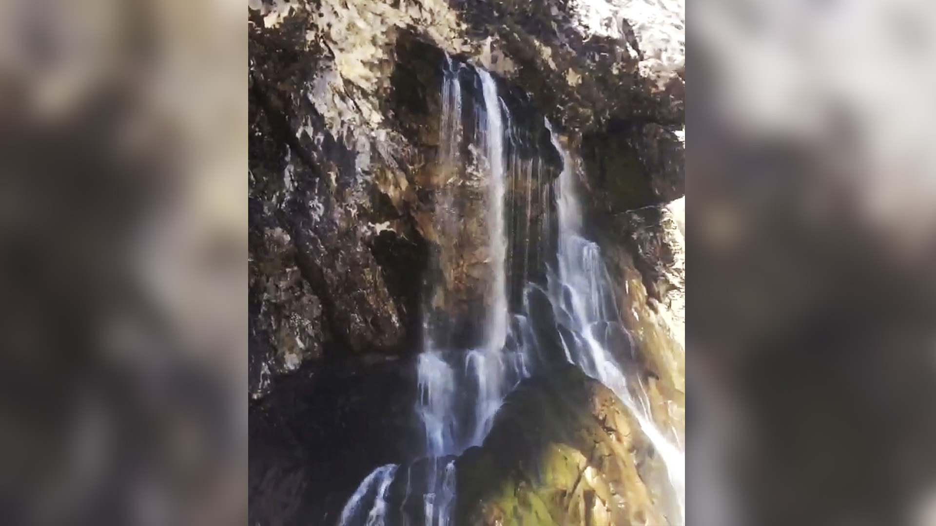 The footage was filmed by a local tourist guide Ruslan at the 70-meter (230-foot) Gegsky waterfall in the self-governing but largely unrecognized state of Abkhazia on the Black Sea.